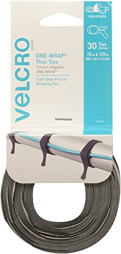 VELCRO Brand ONE WRAP Thin Ties | Strong & Reusable | Perfect for Fastening Wires & Organizing Cords | Black/Gray, 15in x 1/2-Inch | 30 Count
