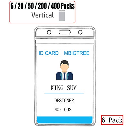 Vertical ID Badge Holders Sealable Waterproof Clear Plastic Holder, Fits RFID/Proximity/Badge Swipe Cards or Credit Card/Driver's License (6 Pcs, Only Holders)