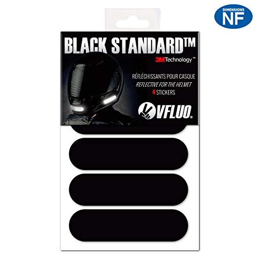 Vfluo Part#: RCblackstandard1 - VFLUO BLACK STANDARD, 4 retro reflective stickers kit for motorbike Helmet, Night visibility, 3M Technology, Black