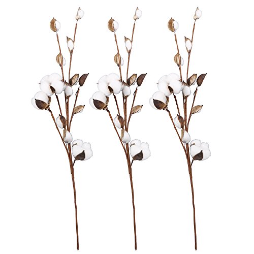 VGIA 20 Inch Cotton Stems Farmhouse Style Display Filler -Floral Decoration-Rustic Wedding Centerpiece