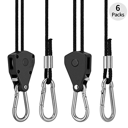 VIVOSUN - 6 Pairs 1/8 inch Adjustable Heavy Duty Rope Hanger - Reinforced Metal Internal Gears Ratchets, Loose-Proof Design, 8-ft Long & 150lbs Weight Capacity (Upgraded Version)