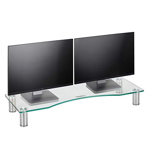 VonHaus Large Curved Glass Monitor Stand - Adjustable Height Multiple Screen Riser for PC Monitors, Computers, Laptops & TVs - 27.5 x 9.5 inches - Clear