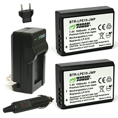 - Includes two (2) Wasabi Power batteries for LP-E10, each with 7.4V, 1600 mAh, Japanese cells