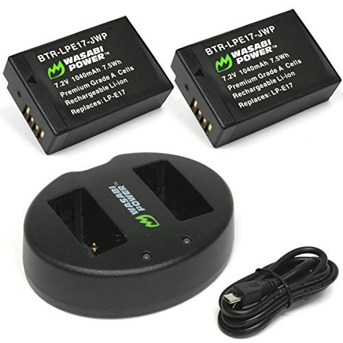 Wasabi Power LP-E17 Battery (2-Pack) and Dual USB Charger for Canon EOS 77D, EOS 750D, EOS 760D, EOS 8000D, EOS M3, EOS M5, EOS M6, EOS Rebel T6i, EOS Rebel T6s, EOS Rebel T7i, Kiss X8i, EOS RP