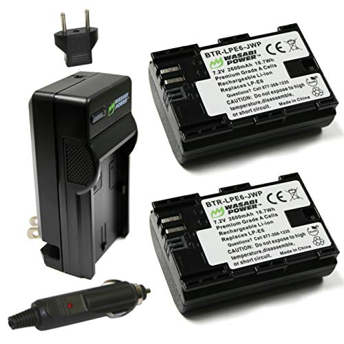 Wasabi Power LP-E6, LP-E6N Battery (2-Pack) and Charger for Canon EOS 5D Mark II/III/IV, EOS 5DS, 5DS R, EOS 6D, 6D Mark II, EOS 7D, 7D Mark II, EOS 60D, 60Da, 70D, 80D, EOS R, XC10, XC15