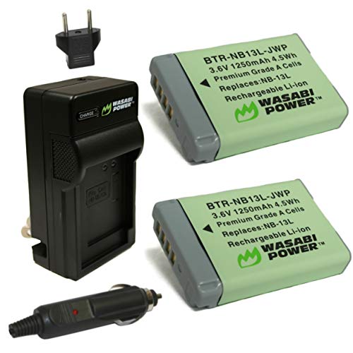 Wasabi Power NB-13L Battery (2-Pack) and Charger for Canon PowerShot G1 X Mark III, G5 X, G7 X, G7 X Mark II, G9 X, G9 X Mark II, SX620 HS, SX720 HS, SX730 HS, SX740 HS