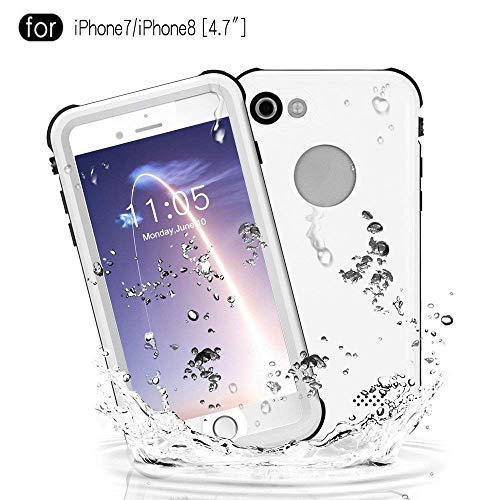 Waterproof Case for iPhone 7/iPhone 8 (4.7 Inch), Full Sealed Protective Cover Built-in Screen Protector IP68 Waterproof Case for Outdoor Sports, Shockproof, Snowproof, Dirtproof (White)