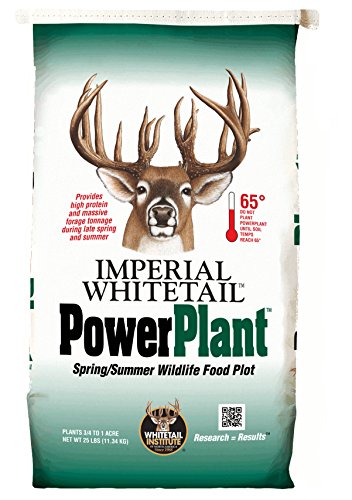 Looking for a spring/summer annual that will deliver high protein tonnage and handle heavy grazing imperial Whitetail power plant is a blend of specially selected annuals that's specifically designed to provide deer with lots of protein during the spring and summer. Power plant can withstand grazing better than other bean and pea plantings. In fact, once power plant establishes, it can even continue to grow as deer feed on it. At the heart of power plant are vining forage soybean and peas that don't get stem my like Agricultural soybeans can. Power plant also includes sun hemp and small amounts of sunflowers to act as a lattice for the vining legumes to climb and maximize production instead of growing along the ground. Power plant is also arrest max approved! Whitetail Institute arrest max grass herbicide can be used to control labeled grasses in power plant stands.Features: