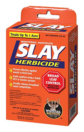 Grasses and weeds can crowd out your carefully planted perennial food plots. Using the right herbicide can help ensure that your food plots perform their best and last much longer. Slay is the field-tested selective broadleaf-weed herbicide that controls a wide spectrum of broadleaf weeds in clover and alfalfa fields. Warning: do not spray on emerging seedling clovers or alfalfas.Features: