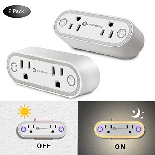 Wifi Smart Plug Outlet, SUPERNIGHT 2.4GHz Wi-Fi Mini Socket with Dusk to Dawn Sensor Night Light, Works with Amazon Alexa,Google Home, Upgraded App and Voice Control, No Hub Required (2 Packs)