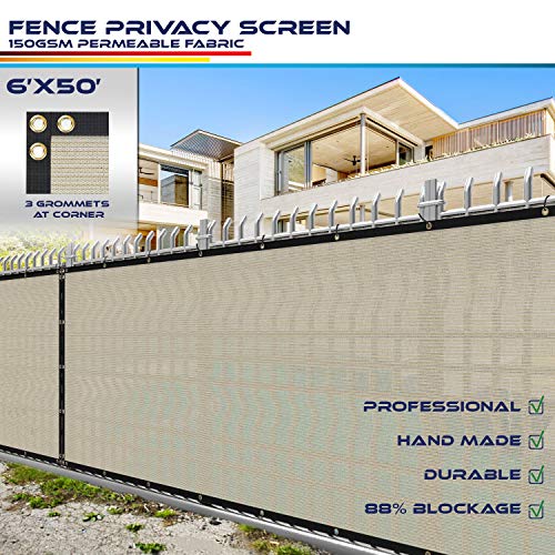 Windscreen4less Heavy Duty Privacy Screen Fence in Color Beige with White Stripes 6' x 50' Brass Grommets w/3-Year Warranty 150 GSM (Customized Sizes Available)