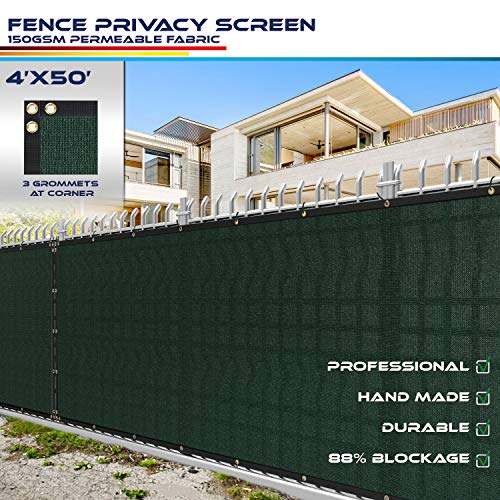 Windscreen4less Heavy Duty Privacy Screen Fence in Color Solid Green 4' x 50' Brass Grommets w/3-Year Warranty 150 GSM (Customized Sizes Available)