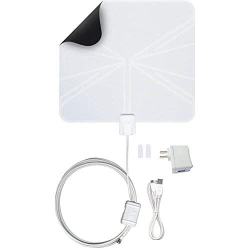 - Includes: FlatWave Antenna with embedded low noise digital amplifier, 18.5 ft. mini 59 coaxial cable (attached to antenna), 3 ft. USB power cable with 110V adapter, Two 3M Command Brand Strips