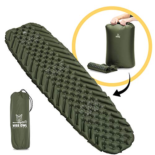 Wise Owl Outfitters Camping Pad - Premium Inflatable Camping Sleeping Pad for Outdoor and Backpacking - Ultralight Compressible Camping Mat - Bubble and Wave Design with Air Inflator Pump Included