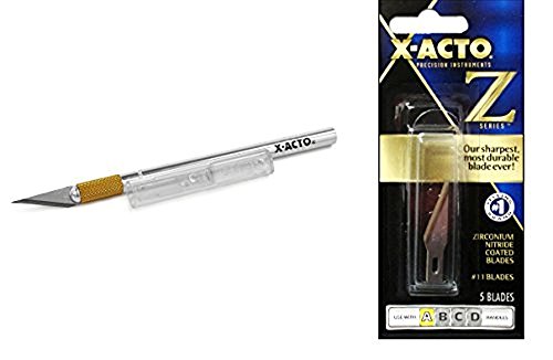 Make precise, fine cuts every time with the X-ACTO #1 Z-Series Knife with Safety Cap. This knife features a #11 fine point zirconium nitride-coated blade for sharpness and strength, and the lightweight aluminum handle enables you to make agile cuts with ease. This X-ACTO knife cuts through a wide variety of materials including paper, plastic, balsa wood, and thin metal. An easy-change blade system lets you swap blades quickly to meet the needs of any project, and the included safety cap offers easy portability. Comes with additional replacement blades.Features: