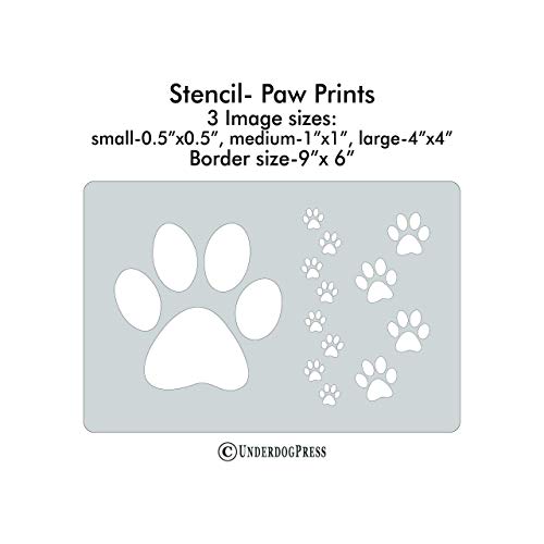 This stencil features 3 paw print sizes on a single stencil. Great for laying down trails of animal tracks!3 paw print image sizes: small- 0.5"x0.5" each, medium- 1"x1" each, large- 4"x4" each.