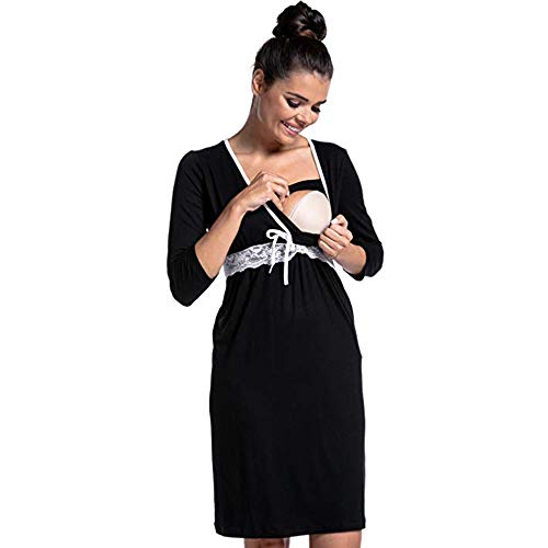 Yansin Womens Maternity Dress Breastfeeding Nursing Sleepwear Pregnancy Nightgown Black
