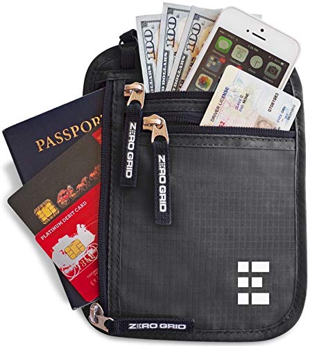 Zero Grid Neck Wallet w/RFID Blocking- Concealed Travel Pouch & Passport Holder (Shadow)