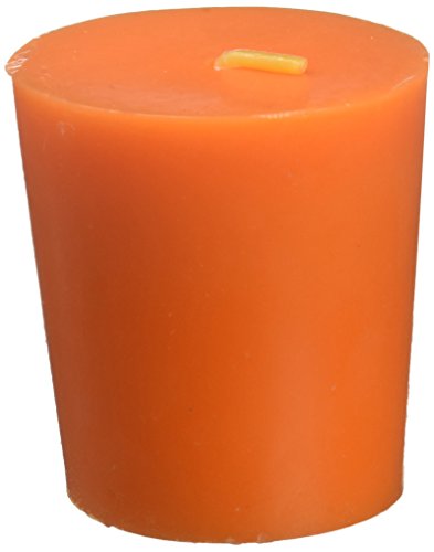 Our orange votive candles use 100% cotton wicks which give the cleanest and longest lasting burn. These votive candles burn exceptionally long and have solid color all the way through. Use the straight sided votives with a votive holder for optimum burn time.Features:
