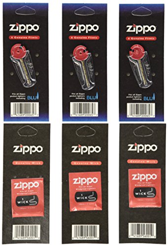 6 value pack lot of new zippo lighter wicks and flints in sealed packs included are three packs of 6 flints each and three packs of 1 wick per pack for a total of 18 flints and 3 wicks.Features: