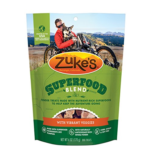 Fuel your dog's playful antics with Zuke's SuperFood Blend With Vibrant Veggies dog treats. Each yummy treat features a blend of beta-carotene-rich veggies to help your dog maintain his healthy lifestyle, and the low-gluten recipe is made for dogs who have dietary gluten sensitivities. The soft, tender texture gives your dog something satisfying to sink his teeth into, and the naturally delicious flavor keeps him craving more at snack time. We formulate this recipe without corn, wheat or soy, so you can feel good about the quality ingredients that go into every treat. Watch as he comes running to you when you open a pouch, and let him delight in the mouthwatering taste that serves as a super healthy reward for a job well done. Give your dog Zuke's SuperFood Blend With Vibrant Veggies dog treats daily to watch him light up as he eats a snack that is made with naturally powerful nutrients, and let him take you on one exciting adventure after another.Features:
